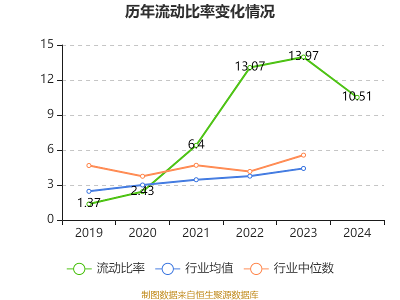 2024年,公司流动比率为10.51,速动比率为10.1。