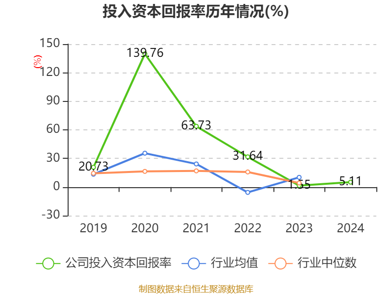 数据显示,2024年公司加权平均净资产收益率为7.03%,较上年同期上升2.76个百分点。公司2024年投入资本回报率为5.11%,较上年同期上升3.56个百分点。