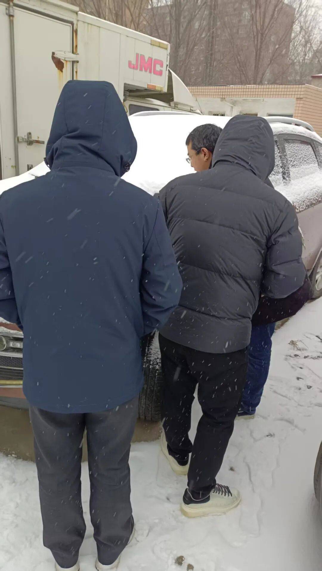 ▲2022年2月,张伟和评估人员评估被执行人被扣押车辆价值,准备网上拍卖。受访者供图