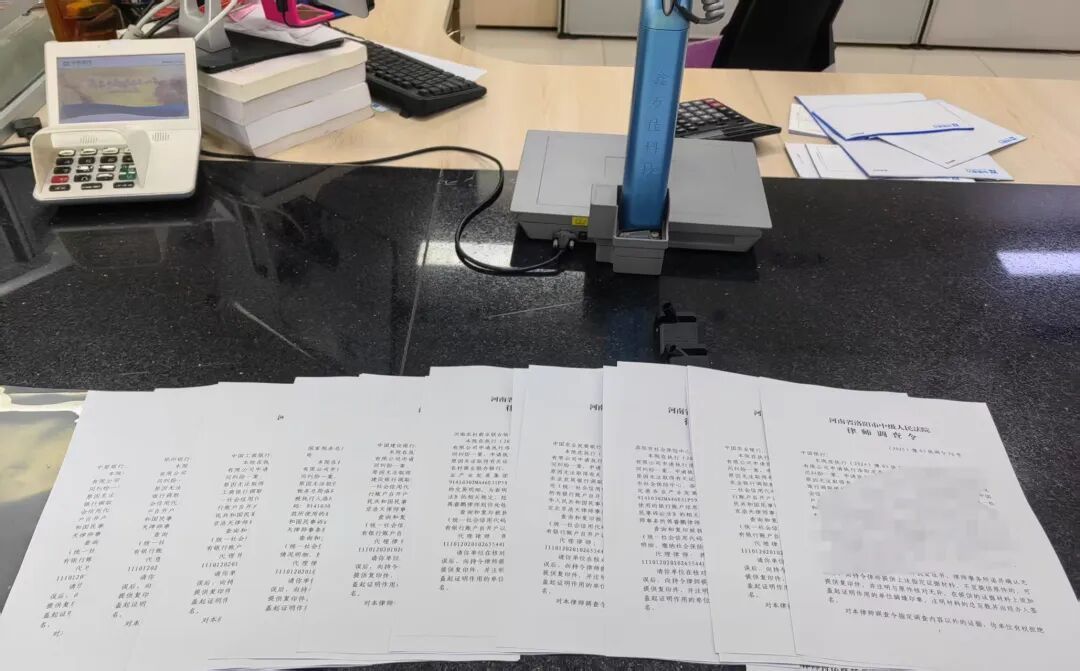 ▲2025年4月,蒋睿鹏在河南洛阳调查被执行人的银行账户流水和税务资料,开了十几份调查令。受访者供图