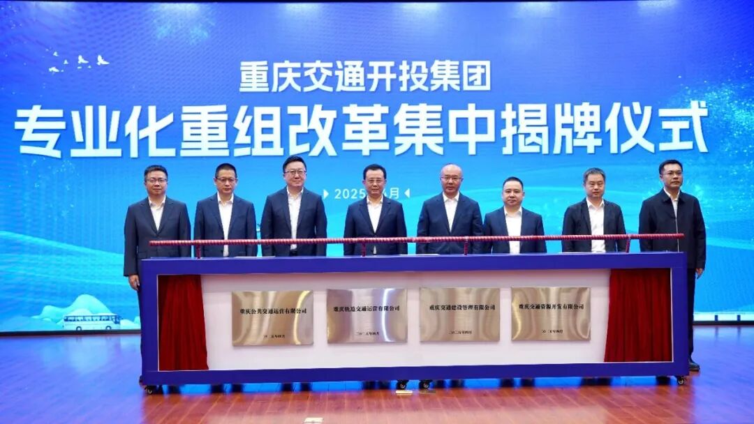 今年4月29日,重庆交通开投集团聚焦“多网一体化、分工专业化、经营市场化”发展,举行内部专业化重组改革集中揭牌仪式,新设成立重庆公共交通运营有限公司、重庆轨道交通运营有限公司,重组成立重庆交通建设管理有限公司、重庆交通资源开发有限公司四家专业子公司。